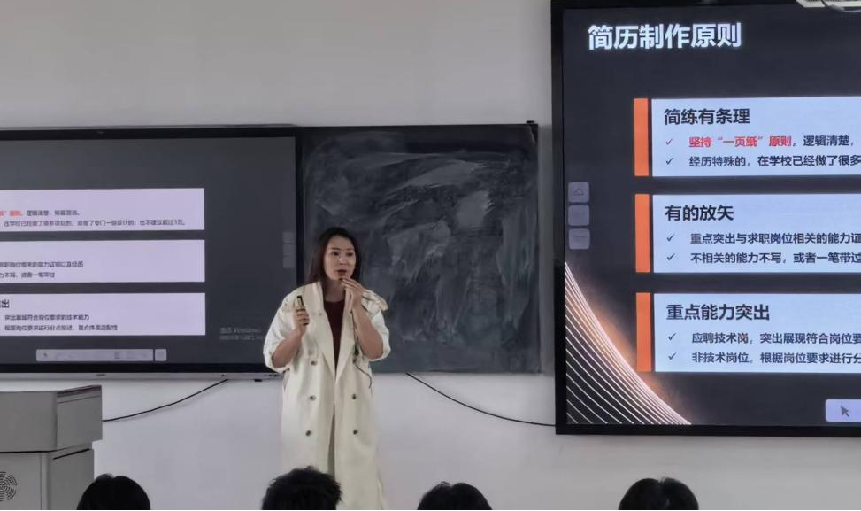 10月15日下午,本科生岗前培训专题指导讲座在教学楼313成功举办。本次讲座特邀高级职业生涯规划师、核桃编程资深人力资源专家苗洁,以“简历制作与求职技巧”为主题为师生们开展了专题讲座,创新创业学院全体、各学院辅导员老师及2026届本科毕业生参与学习,讲座由创新创业学院院长伍建文主持。